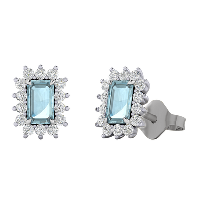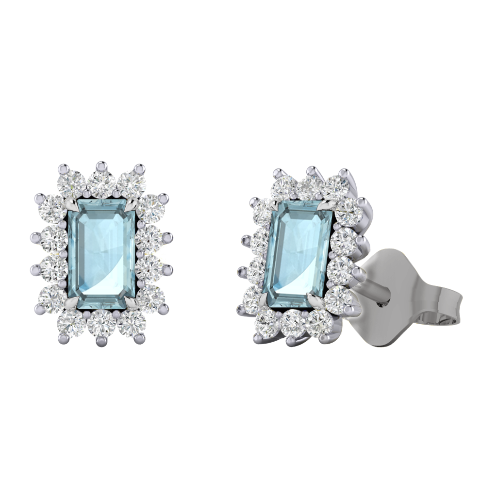 Star Stud Emerald Aquamarine 18K White Gold Earrings