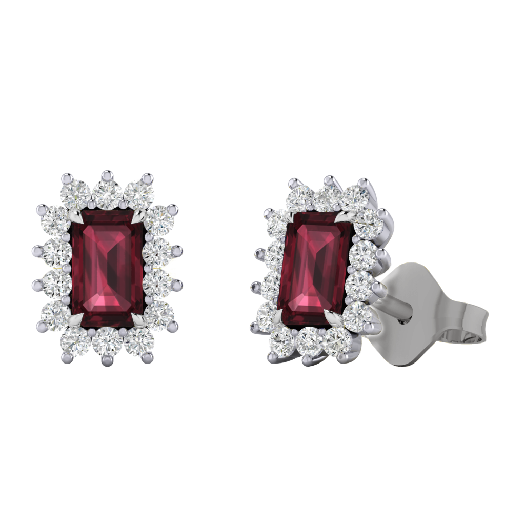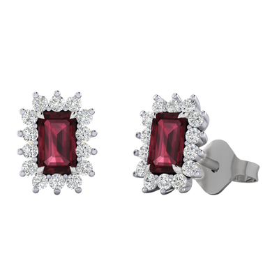 Star Stud Emerald Garnet 18K White Gold Earrings
