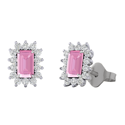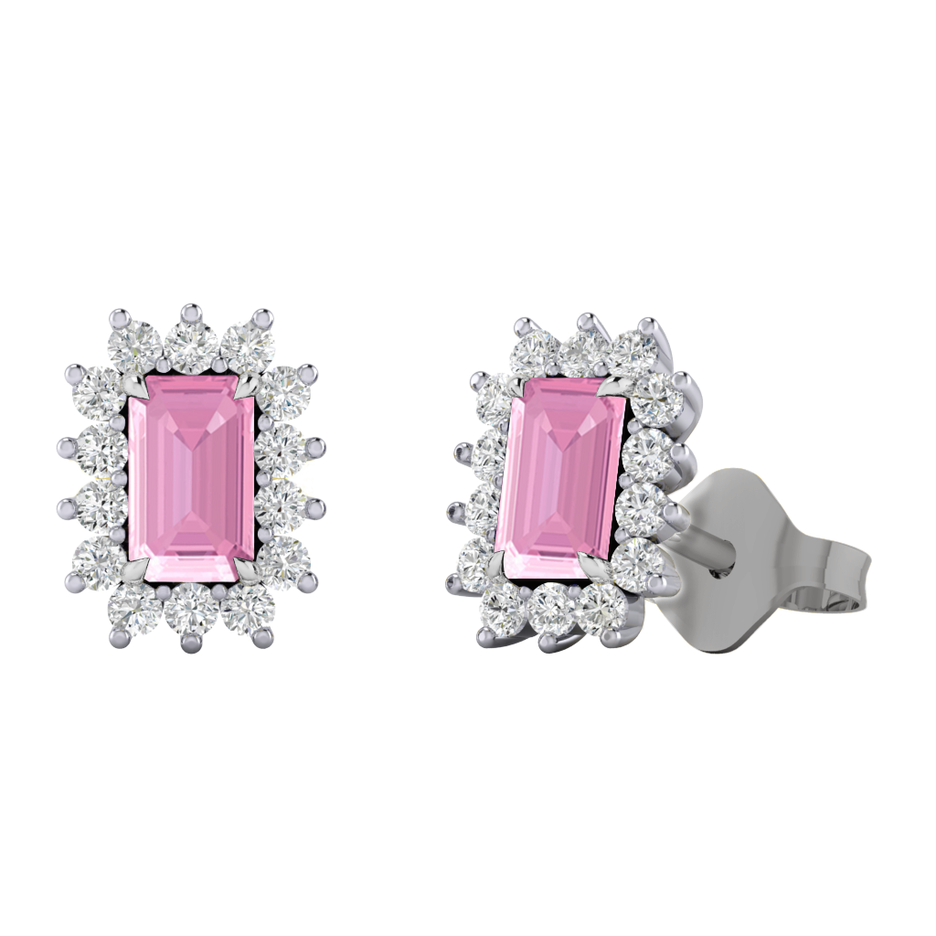 Star Stud Emerald Pink Sapphire 18K White Gold Earrings