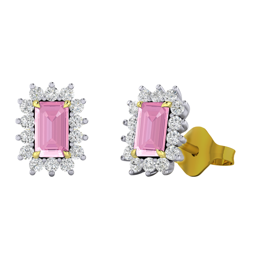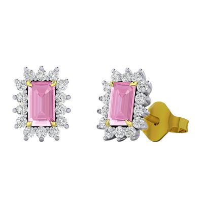 Star Stud Emerald Pink Sapphire 18K Yellow Gold Earrings