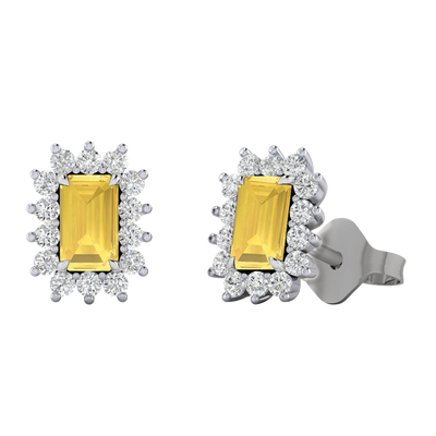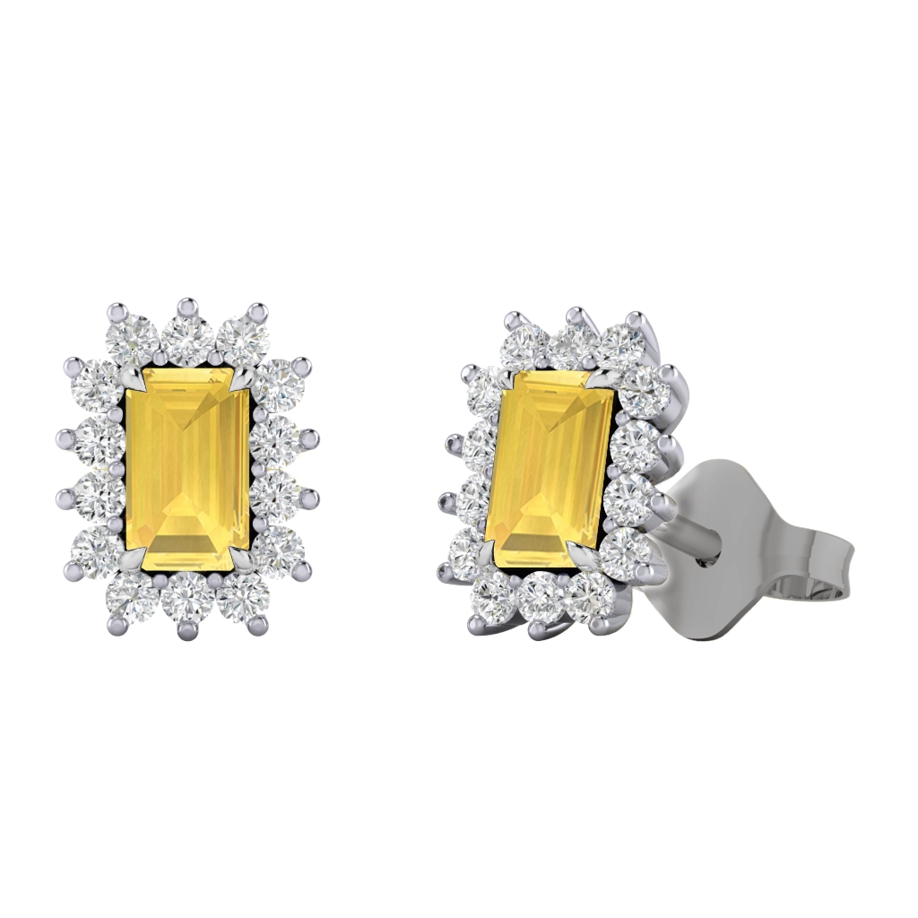 Star Stud Emerald Yellow Sapphire 18K White Gold Earrings