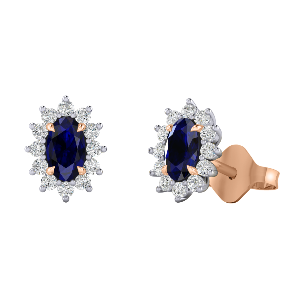 Star Stud Oval Blue Sapphire 18K Rose Gold Earrings