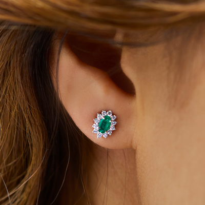 Il est temps d'avoir des étoiles plein les yeux avec les clous d'oreilles Stud Star. D'inspiration céleste, ce design intemporel ne manquera pas de vous enchanter. Il est composé d'une pierre centrale étincelante de votre choix, comme une émeraude, un saphir bleu ou un rubis, complétée par un halo de diamants G/H VS sertis à trois griffes, qui créent l'esthétique magique de l'étoile.