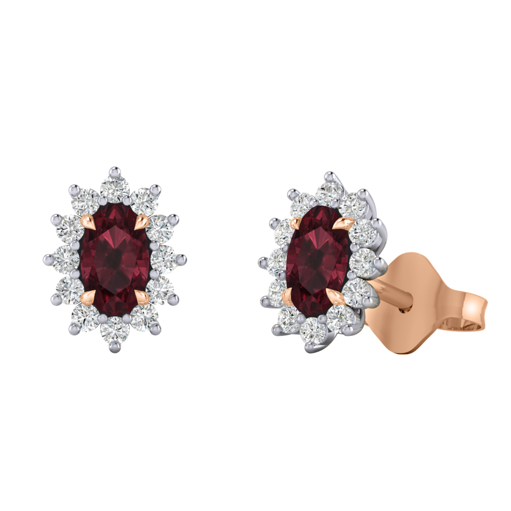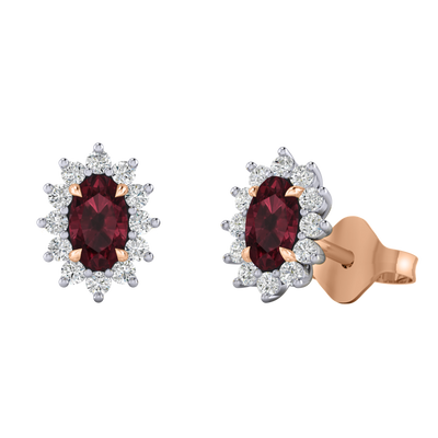 Star Stud Oval Garnet 18K Rose Gold Earrings