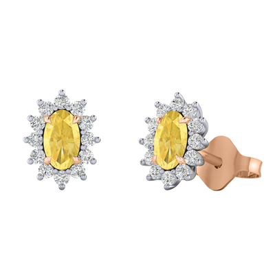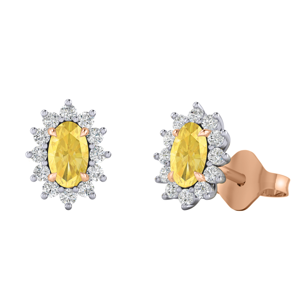 Star Stud Oval Yellow Sapphire 18K Rose Gold Earrings