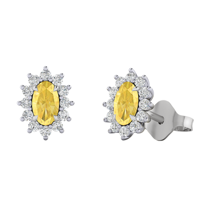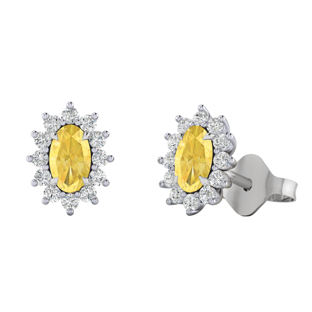 Star Stud Oval Yellow Sapphire 18K White Gold Earrings