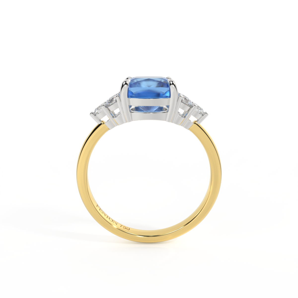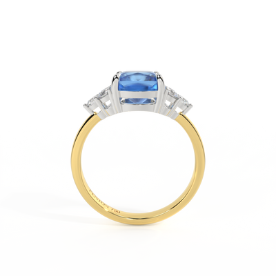Trefoil Cushion Blue Sapphire 18K Yellow Gold Ring
