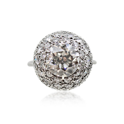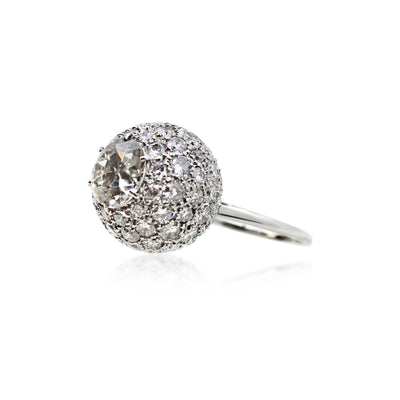 Unusual diamond boule cocktail ring, the raised sphere pavé-set with brilliant-cut diamonds to a central old mine-cut diamond weighing approx. 2.40cts, mounted in platinum, size L