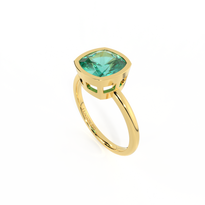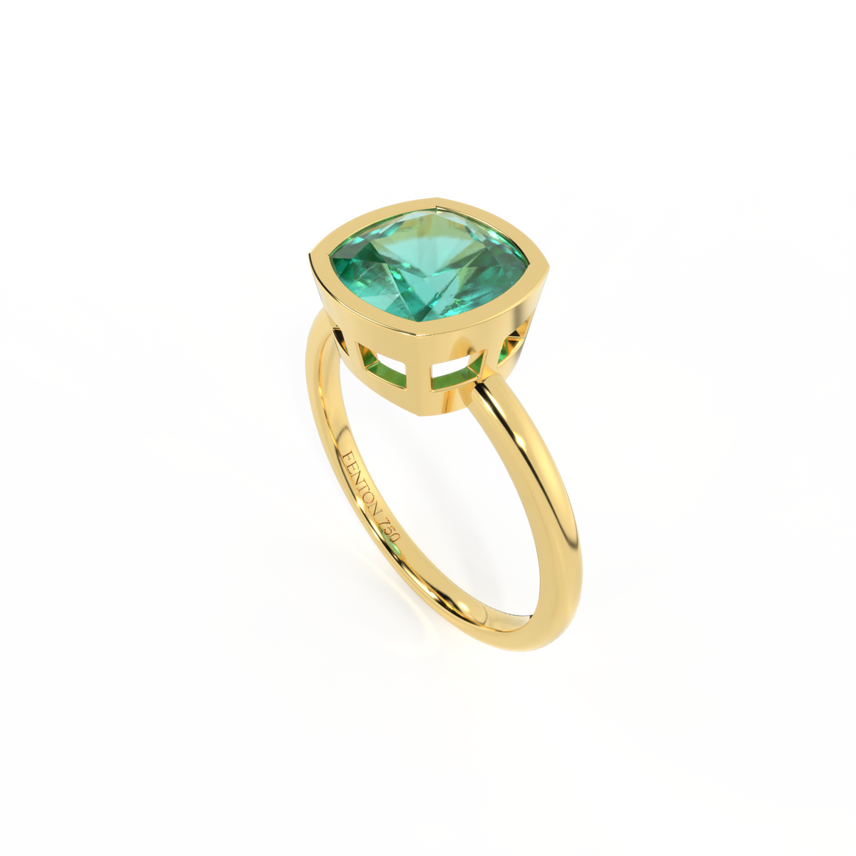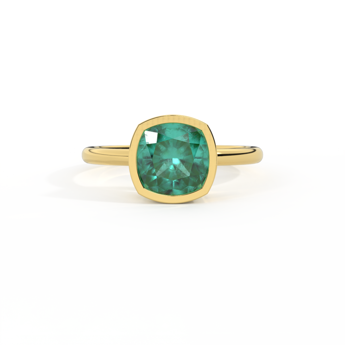 Bezel Cushion Emerald 18K Yellow Gold Ring