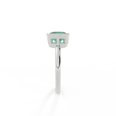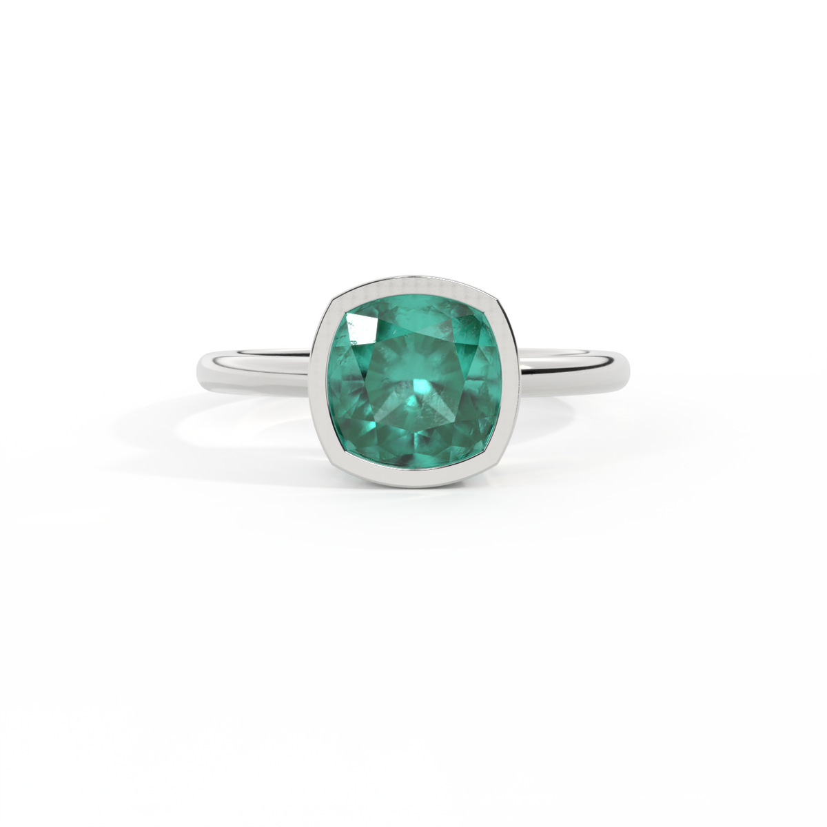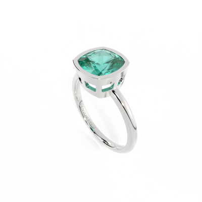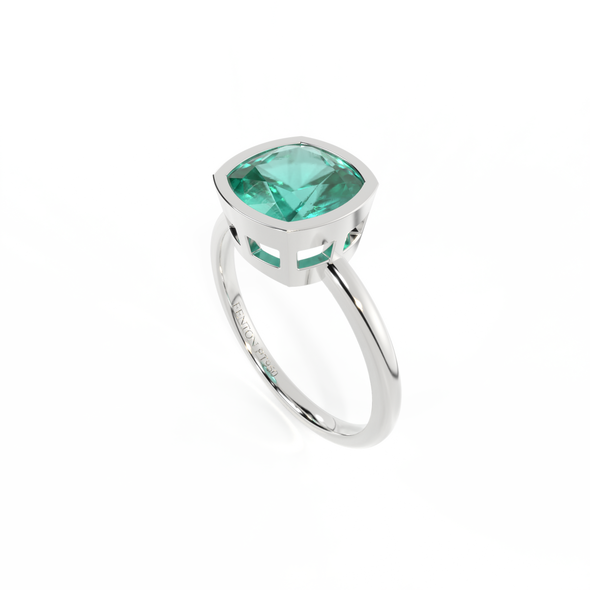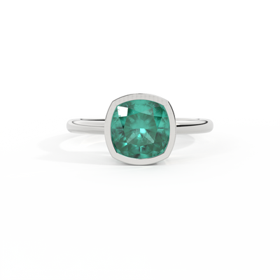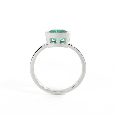 Minimalism meets modernism - the unique characteristics of this Cushion cut Emerald are given centre stage in The Bezel. A modern take on a solitaire, this style frames the 6mm Emerald in a secure custom made setting that's simple and striking at the same time.