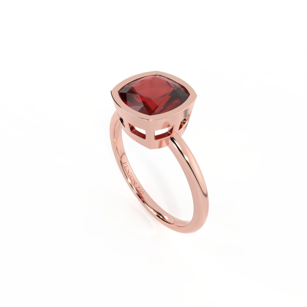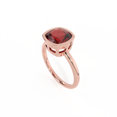 Bezel Cushion Garnet 18K Rose Gold Ring