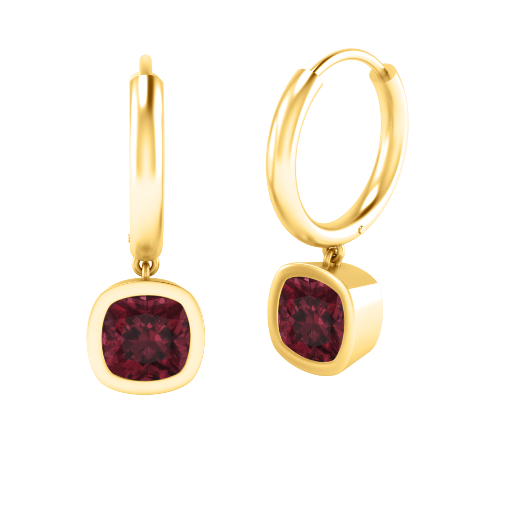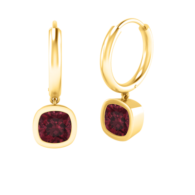 Bezel Drop Cushion Cut Garnet 18K Yellow Gold Earrings