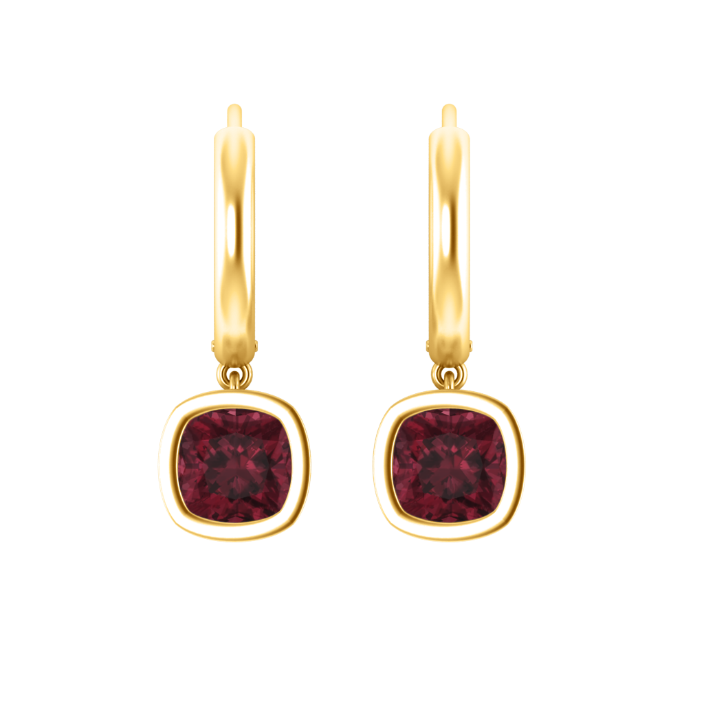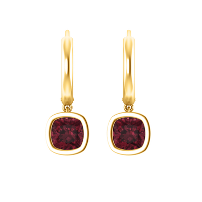 Bezel Drop Cushion Cut Garnet 18K Yellow Gold Earrings