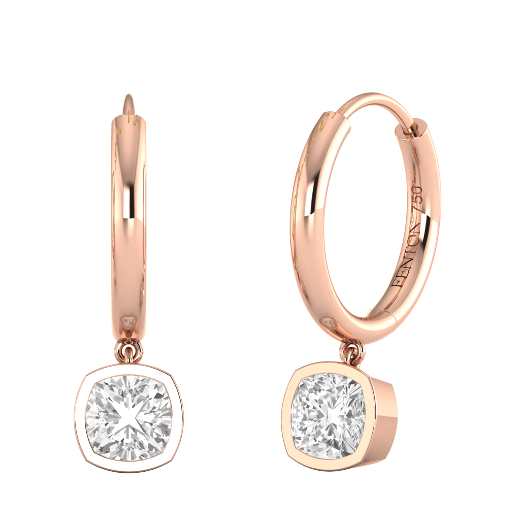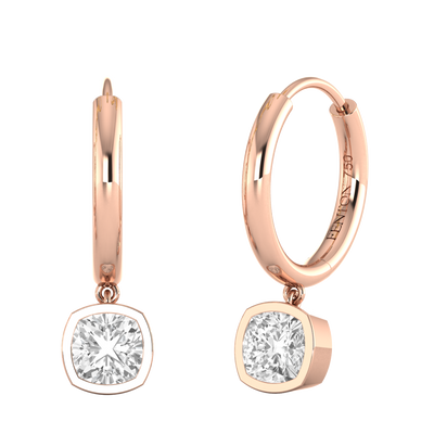 Bezel Drop Cushion Cut Solar Diamond 18K Rose Gold Earrings