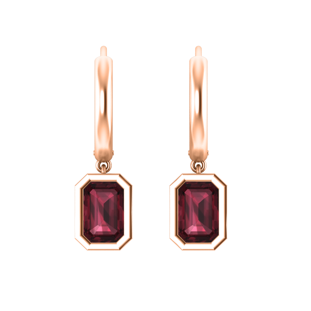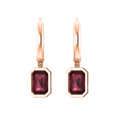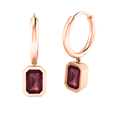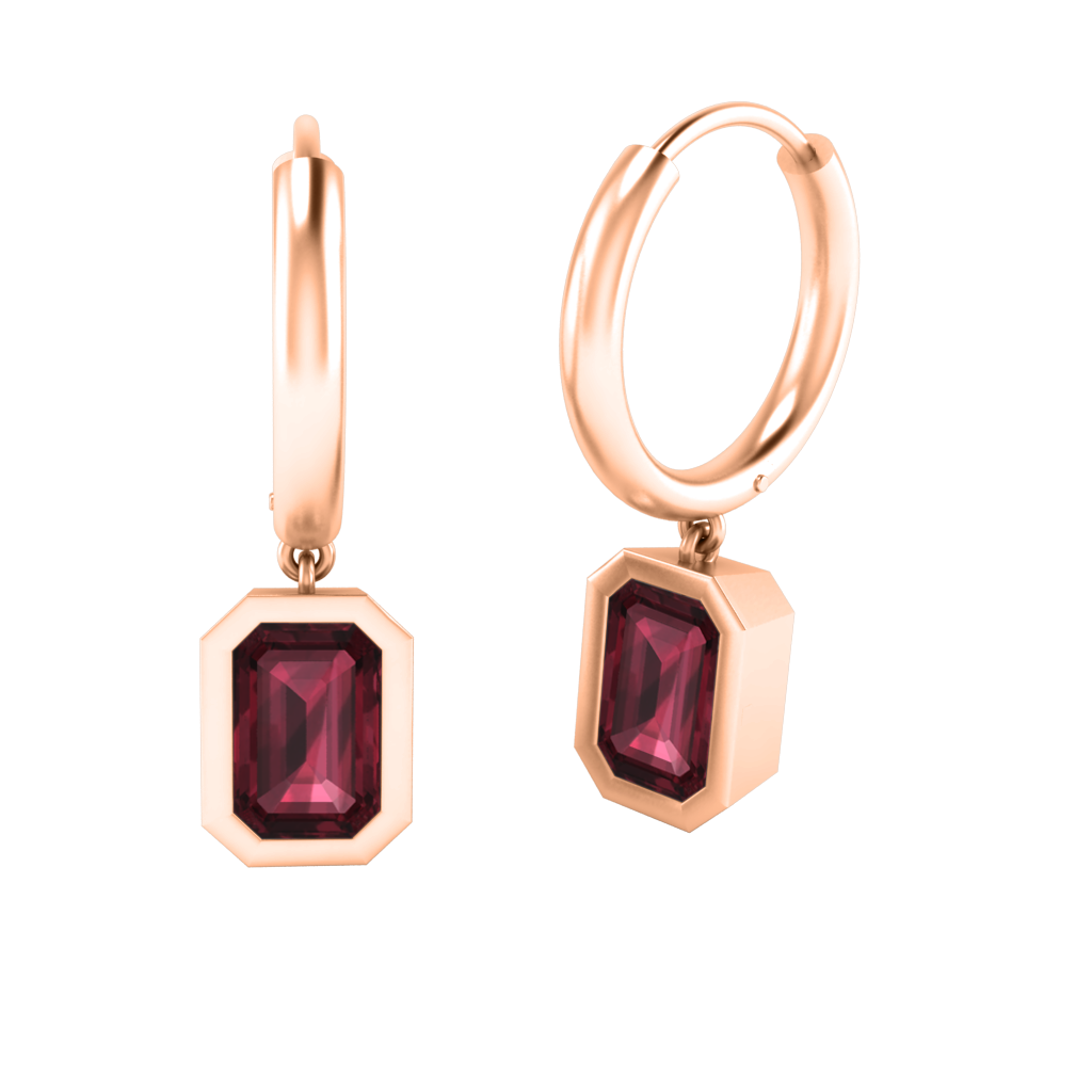 Bezel Drop Emerald Cut Garnet 18K Rose Gold Earrings