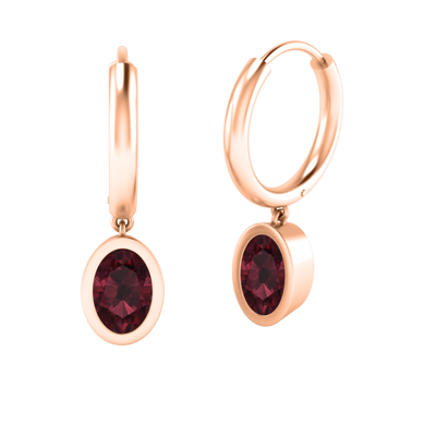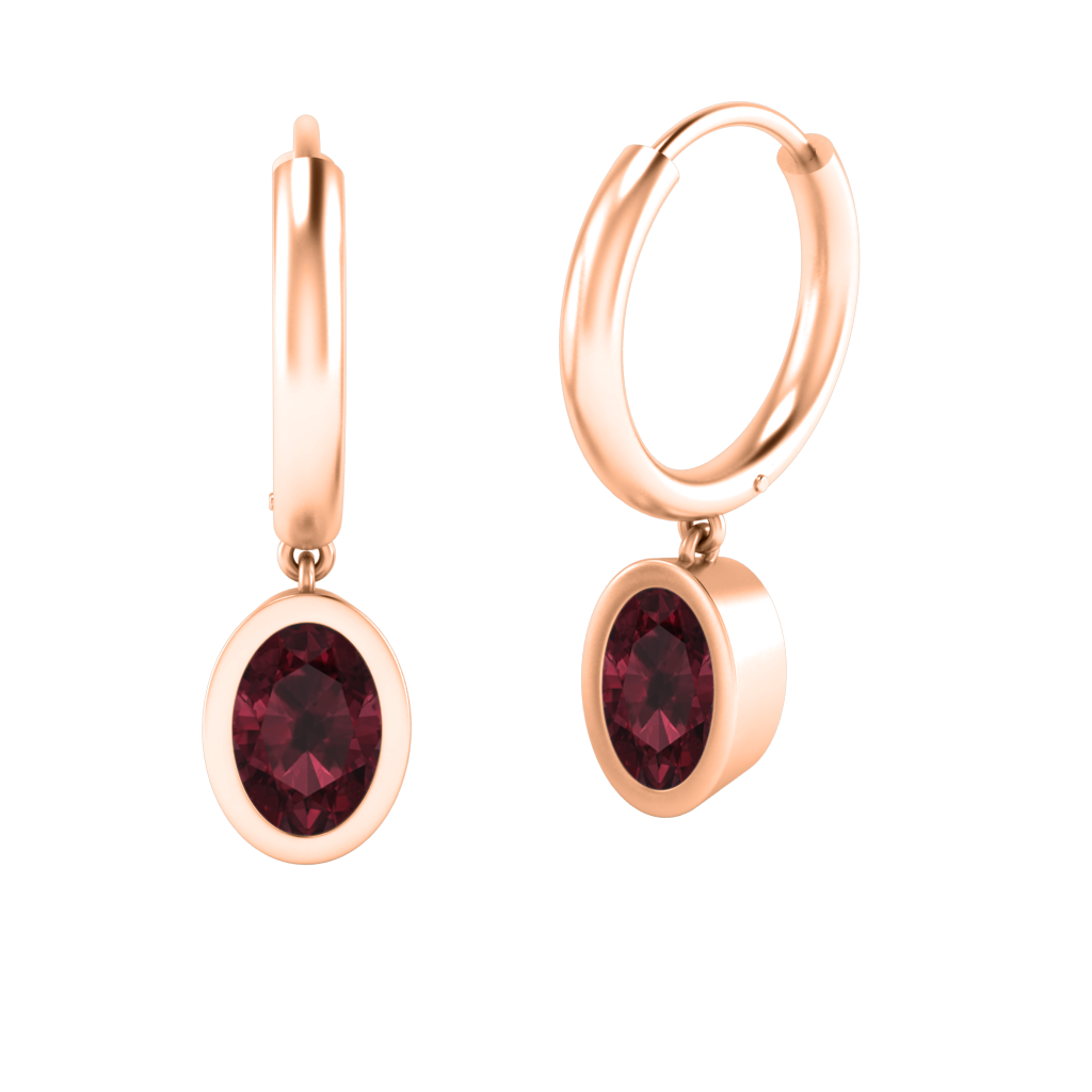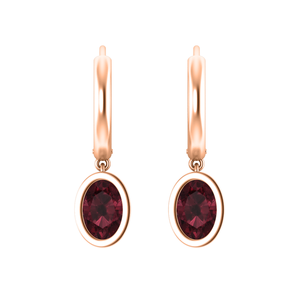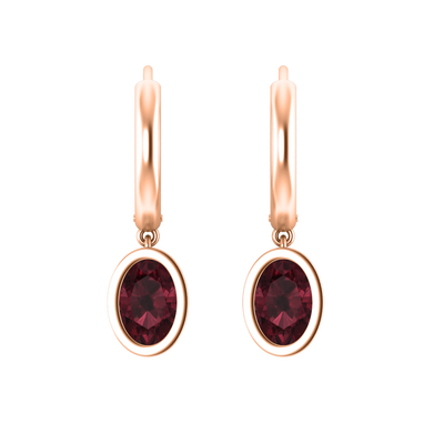 Bezel Drop Oval Cut Garnet 18K Rose Gold Earrings