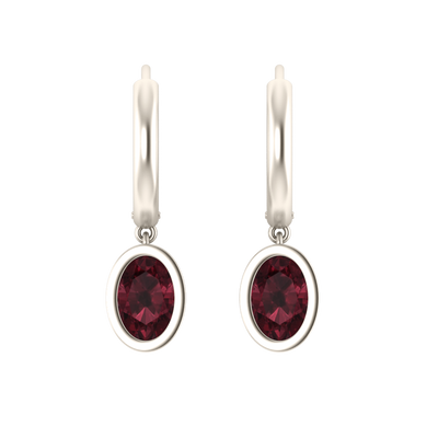 Bezel Drop Oval Cut Garnet 18K White Gold Earrings
