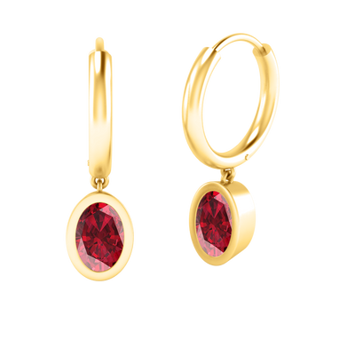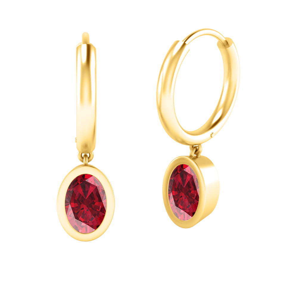 Bezel Drop Oval Cut Ruby 18K Yellow Gold Earrings