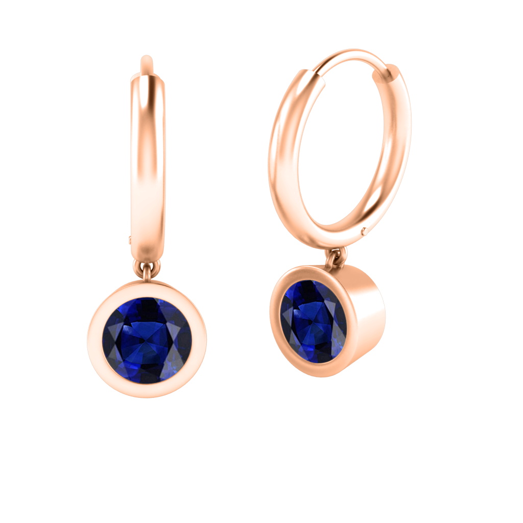 Bezel Drop Round Cut Blue Sapphire 18K Rose Gold Earrings