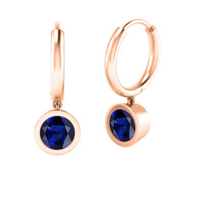 The Bezel Drop Blue Sapphire Earrings take a modern twist on our Classic Drop Earrings. This subtle yet elegant design features a sparkling Blue Sapphire crafted in an open, modern bezel setting. A classic plain 18K Rose Gold huggie hoop will carry your glistening Round cut Blue Sapphire drop making it the perfect earring to sparkle as a pair or wear solo as part of an earring stack.