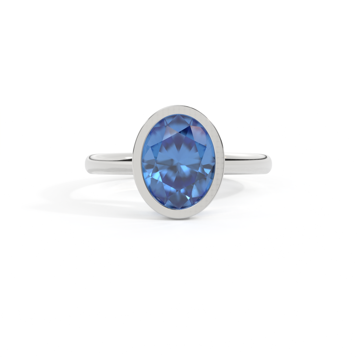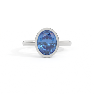Bezel Oval Blue Sapphire Platinum Ring