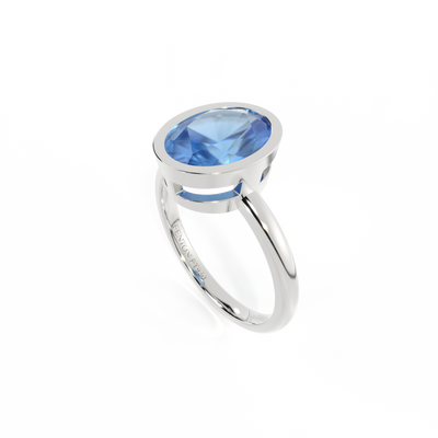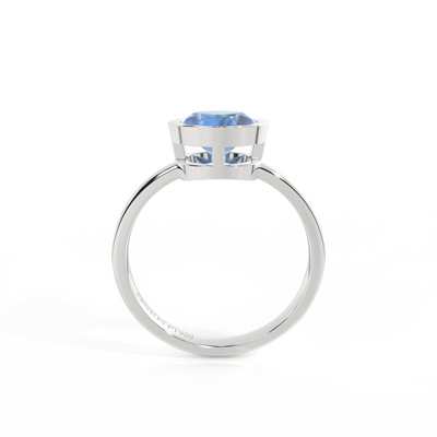 Minimalism meets modernism - the unique characteristics of this Oval cut Blue Sapphire are given centre stage in The Bezel. A modern take on a solitaire, this style frames the 6mm Blue Sapphire in a secure custom made setting that's simple and striking at the same time.