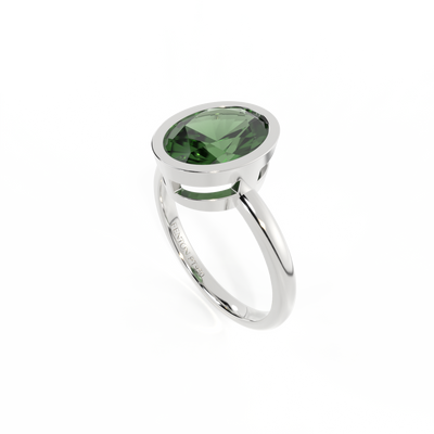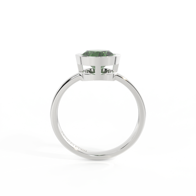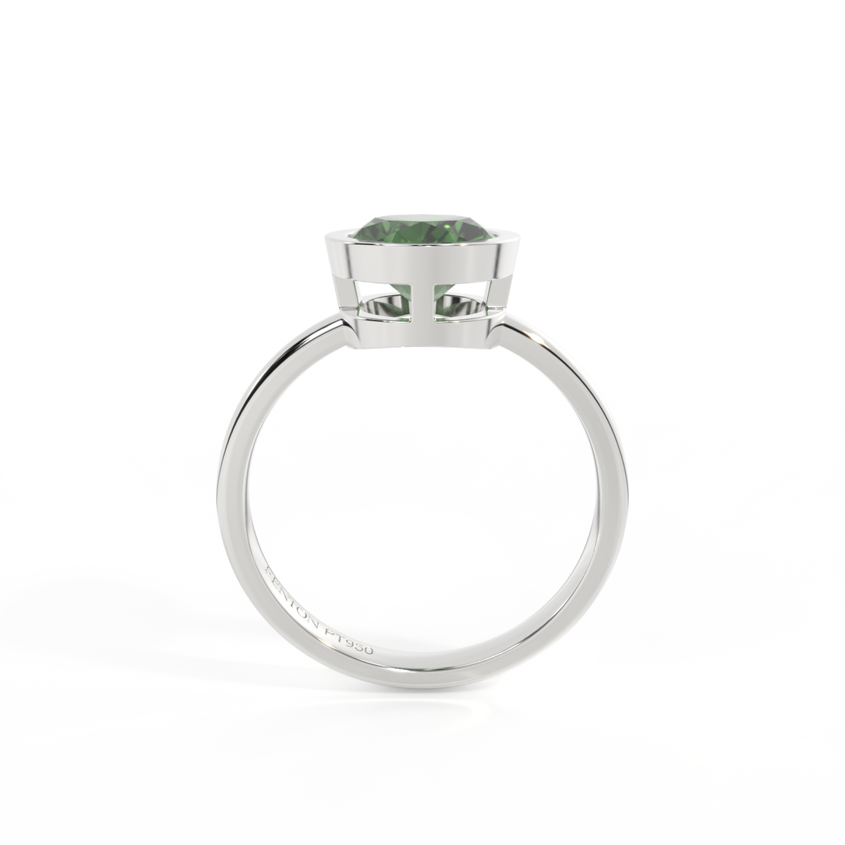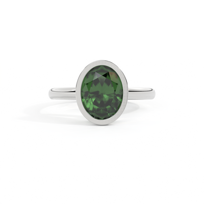 Minimalism meets modernism - the unique characteristics of this Oval cut Green Sapphire are given centre stage in The Bezel. A modern take on a solitaire, this style frames the 6mm Ruby in a secure custom made setting that's simple and striking at the same time.