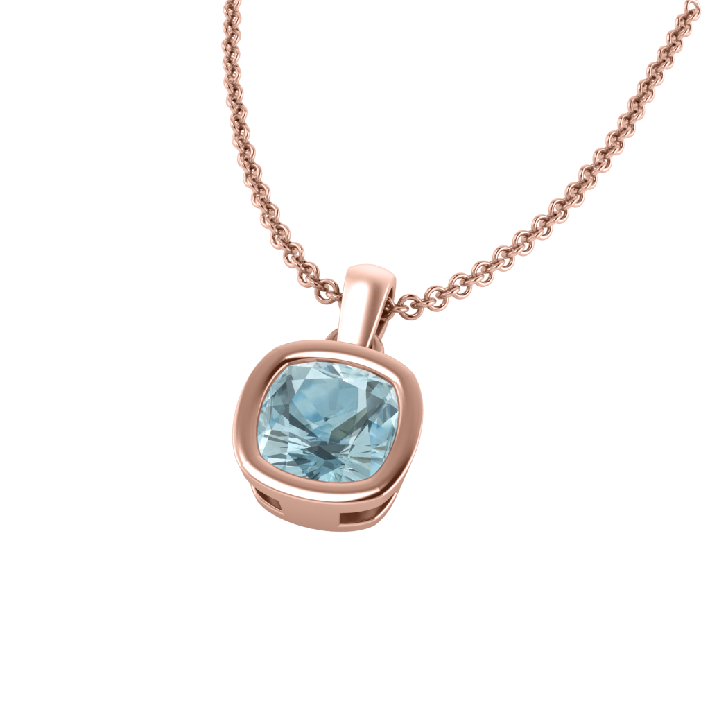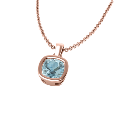 Bezel Cushion Cut Aquamarine 18K Rose Gold Pendant Necklace
