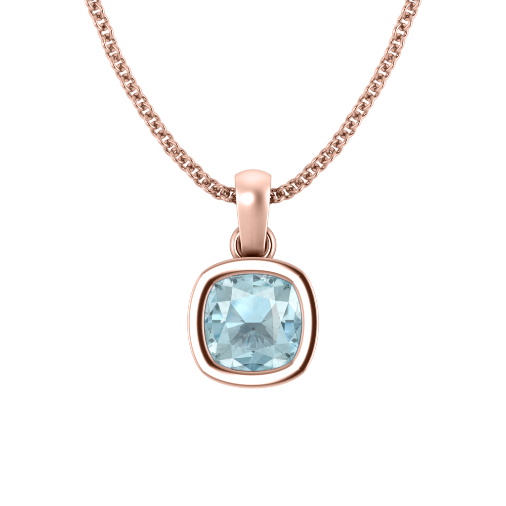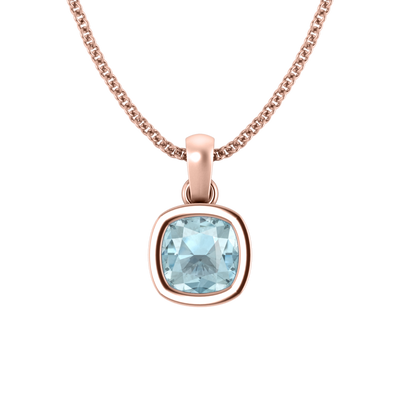 Bezel Cushion Cut Aquamarine 18K Rose Gold Pendant Necklace