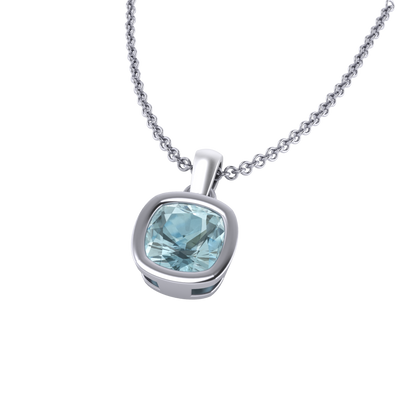 Bezel Cushion Cut Aquamarine 18K White Gold Pendant Necklace
