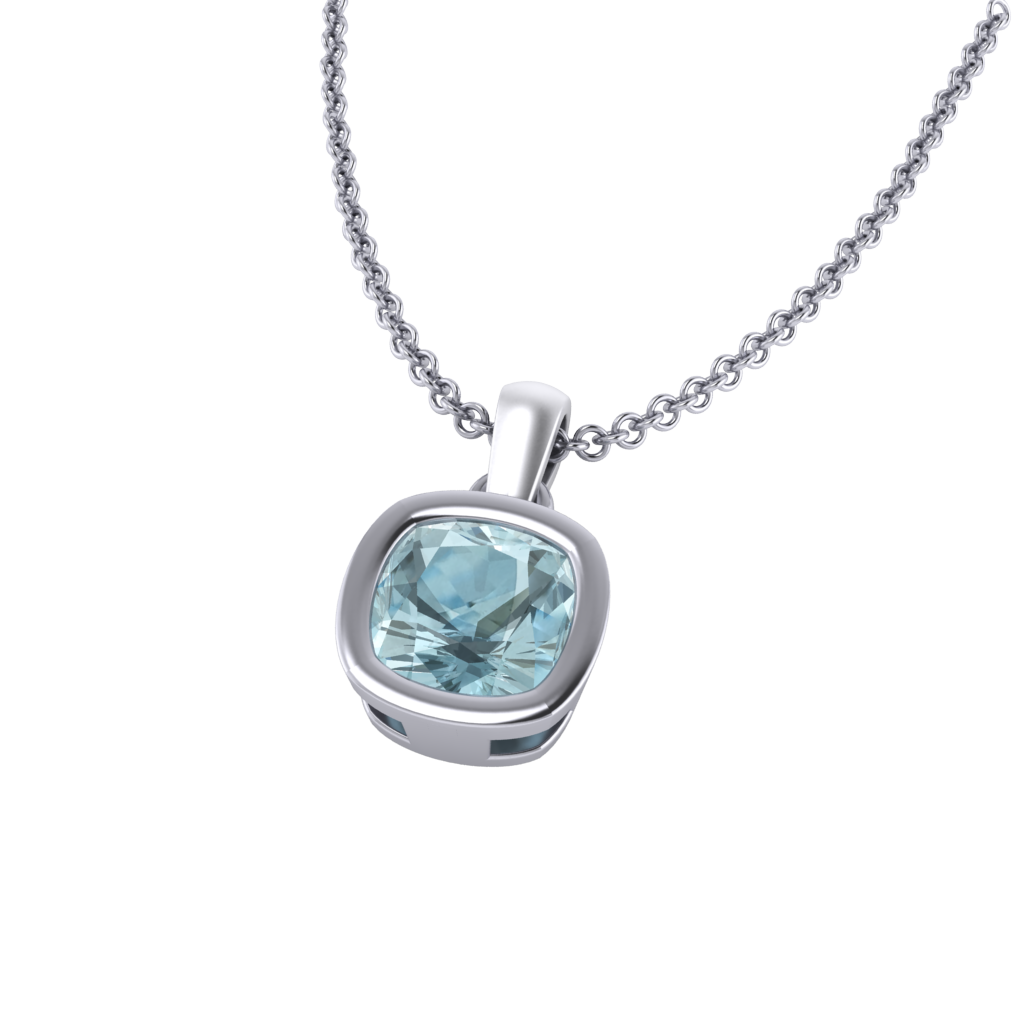 Bezel Cushion Cut Aquamarine 18K White Gold Pendant Necklace
