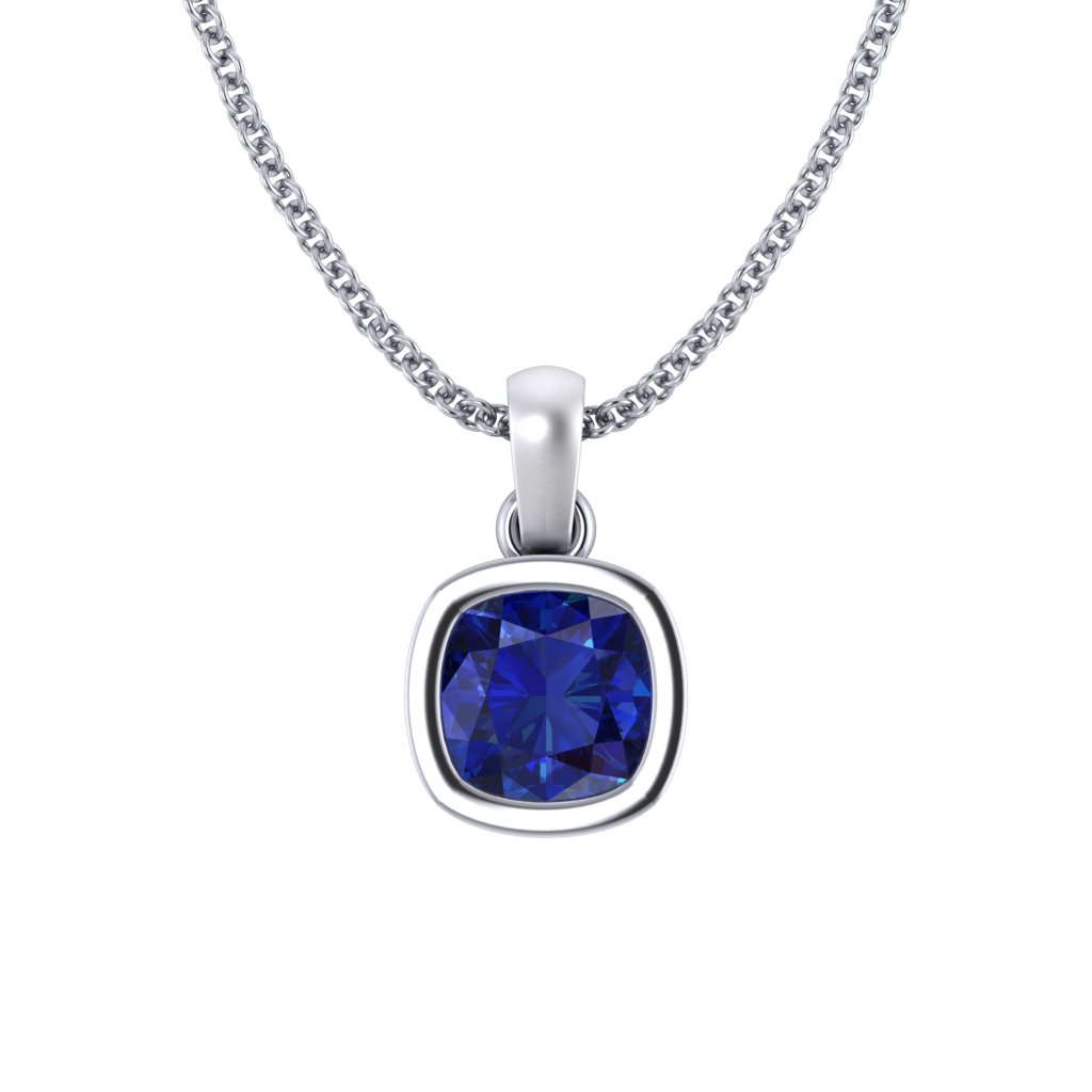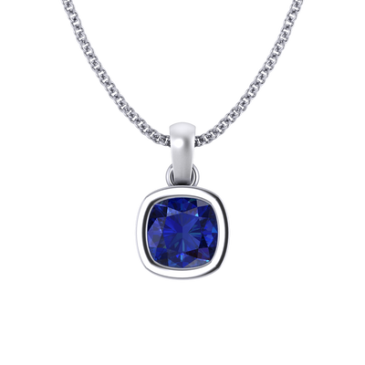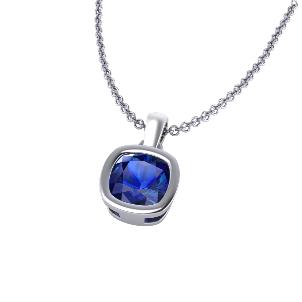 Bezel Cushion Cut Blue Sapphire 18K White Gold Pendant Necklace