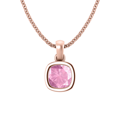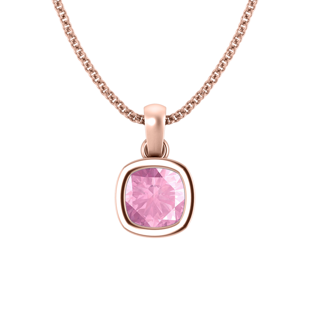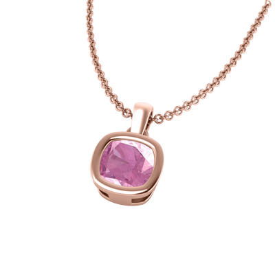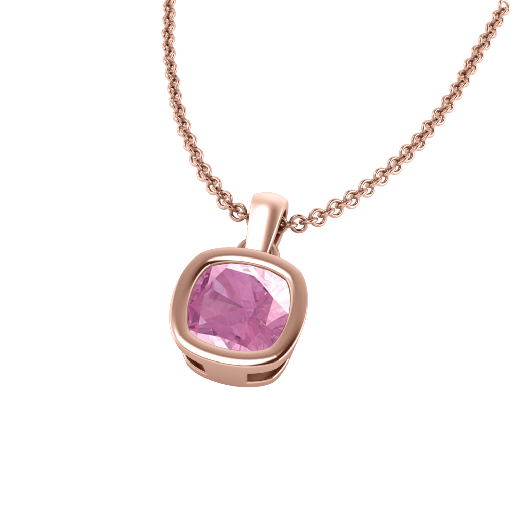 Bezel Cushion Cut Pink Sapphire 18K Rose Gold Pendant Necklace