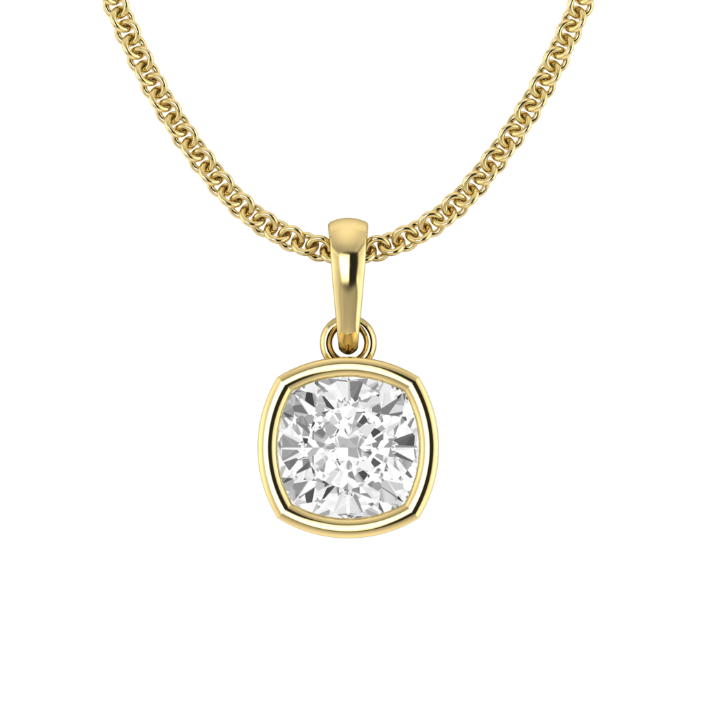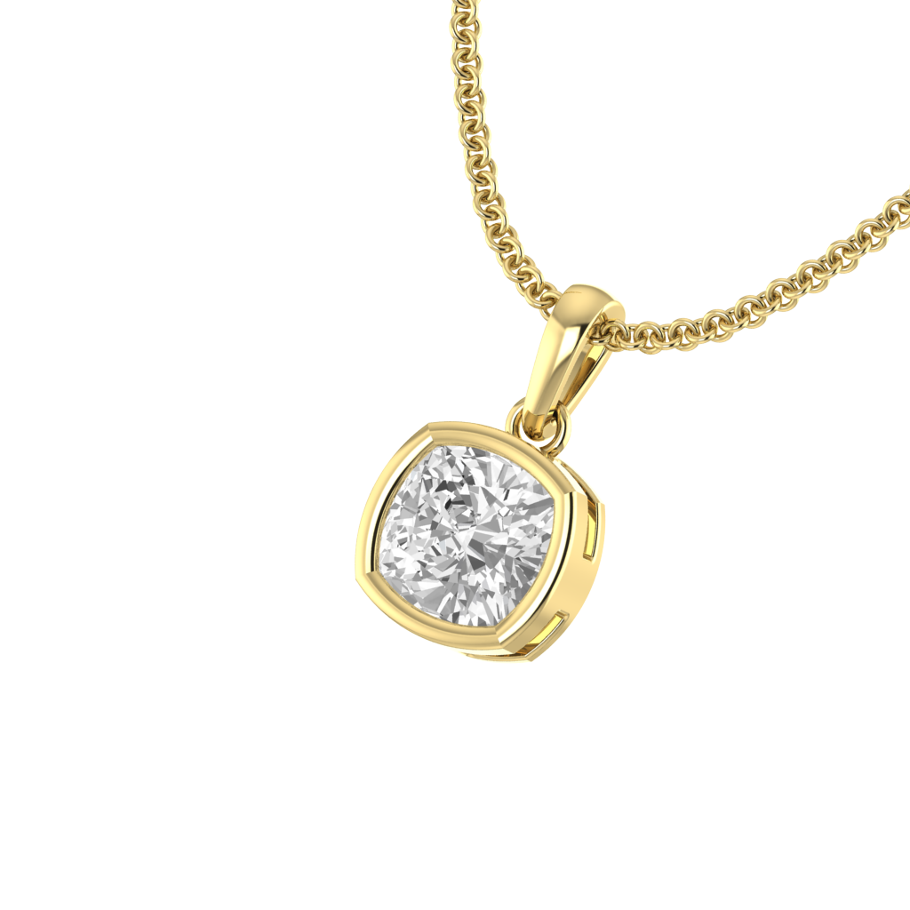 Bezel Cushion Cut Solar Diamond 18K Yellow Gold Pendant Necklace