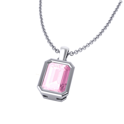 Bezel Emerald Cut Pink Sapphire 18K White Gold Pendant Necklace