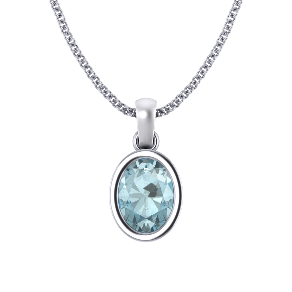 Bezel Oval Cut Aquamarine 18K White Gold Pendant Necklace