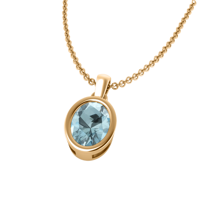 Bezel Oval Cut Aquamarine 18K Yellow Gold Pendant Necklace