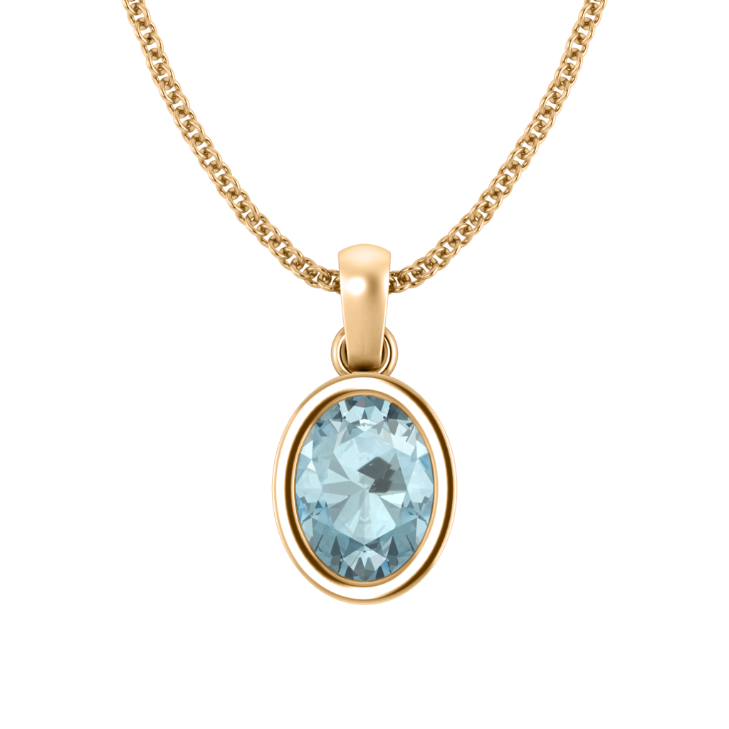 The Bezel Pendant Necklace combines minimalism with modern elegance. The Oval cut Aquamarine pendant is bezel-set in a 18K Yellow Gold rim and effortlessly balances on a matching chain.