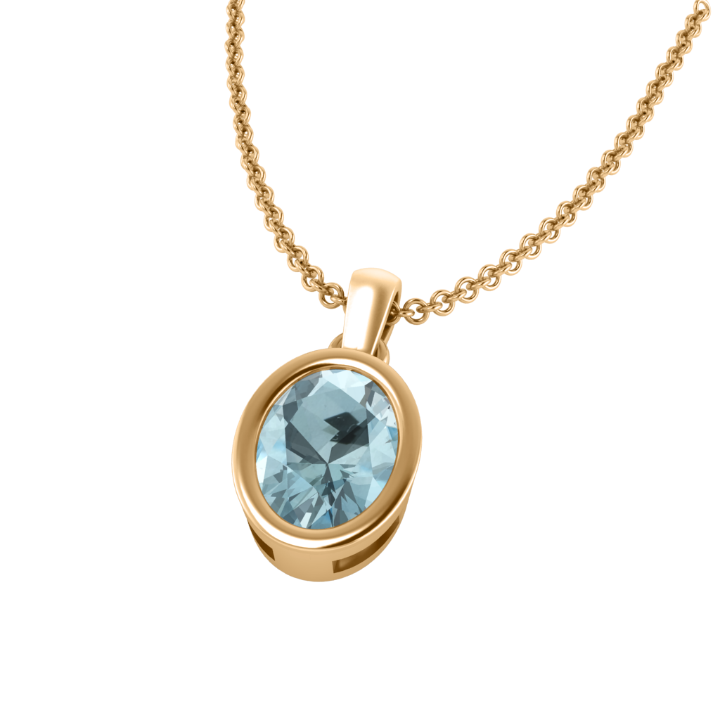 Bezel Oval Cut Aquamarine 18K Yellow Gold Pendant Necklace