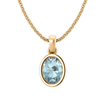The Bezel Pendant Necklace combines minimalism with modern elegance. The Oval cut Aquamarine pendant is bezel-set in a 18K Yellow Gold rim and effortlessly balances on a matching chain.