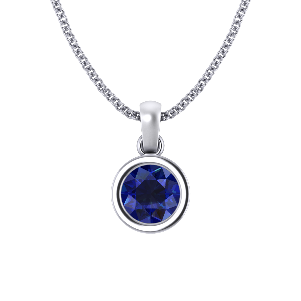 Bezel Round Cut Blue Sapphire 18K White Gold Pendant Necklace