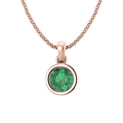 Bezel Round Cut Emerald 18K Rose Gold Pendant Necklace