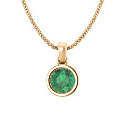 Bezel Round Cut Emerald 18K Yellow Gold Pendant Necklace