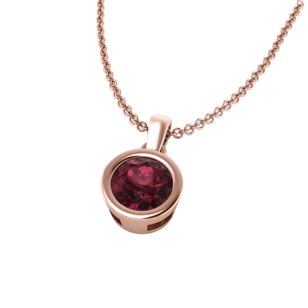 The Bezel Pendant Necklace combines minimalism with modern elegance. The Round cut Garnet pendant is bezel-set in a 18K Rose Gold rim and effortlessly balances on a matching chain.