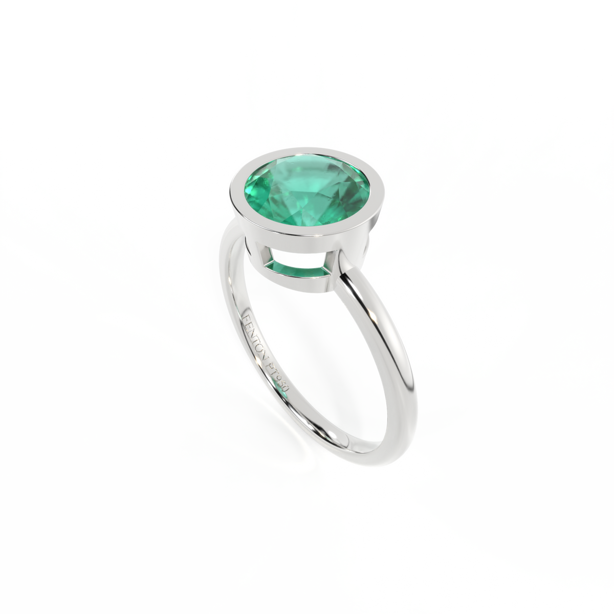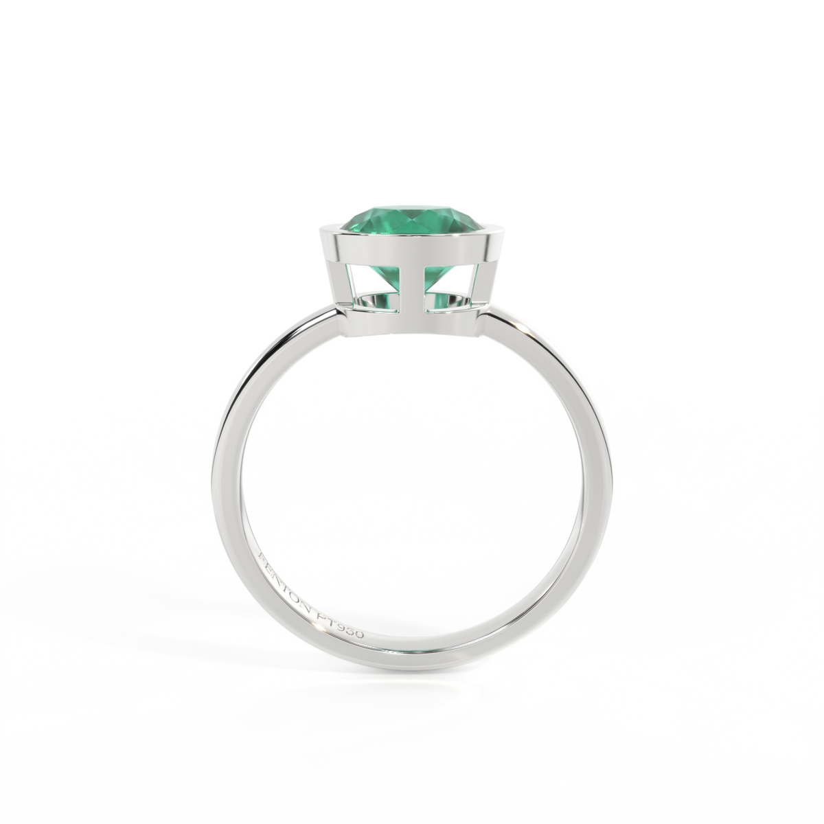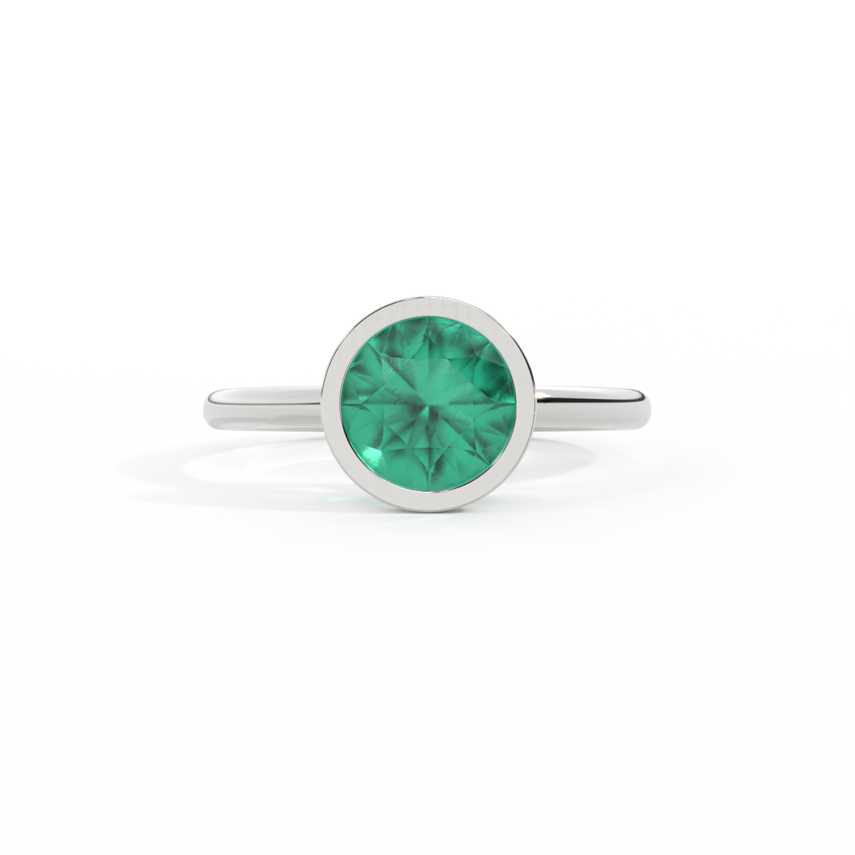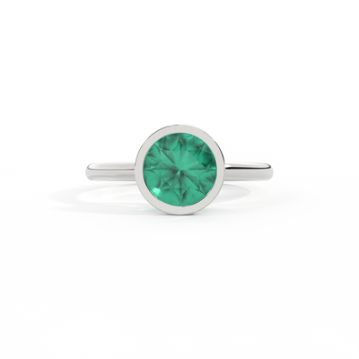 Bezel Round Emerald Platinum Ring