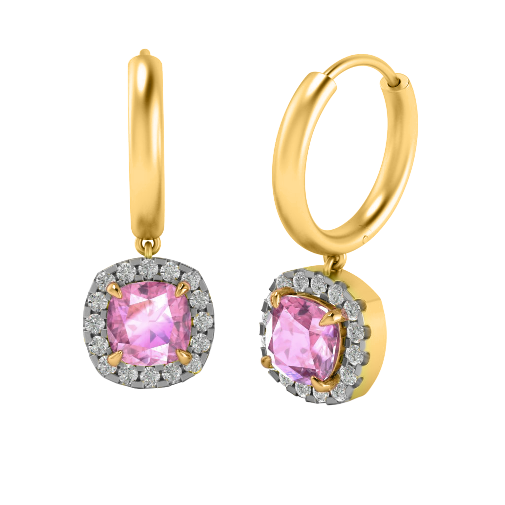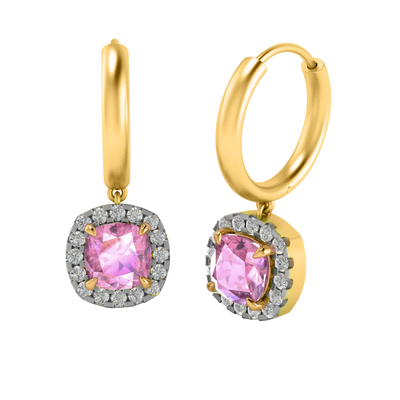 Classic Drop Cushion Pink Sapphire 18K Yellow Gold Earrings