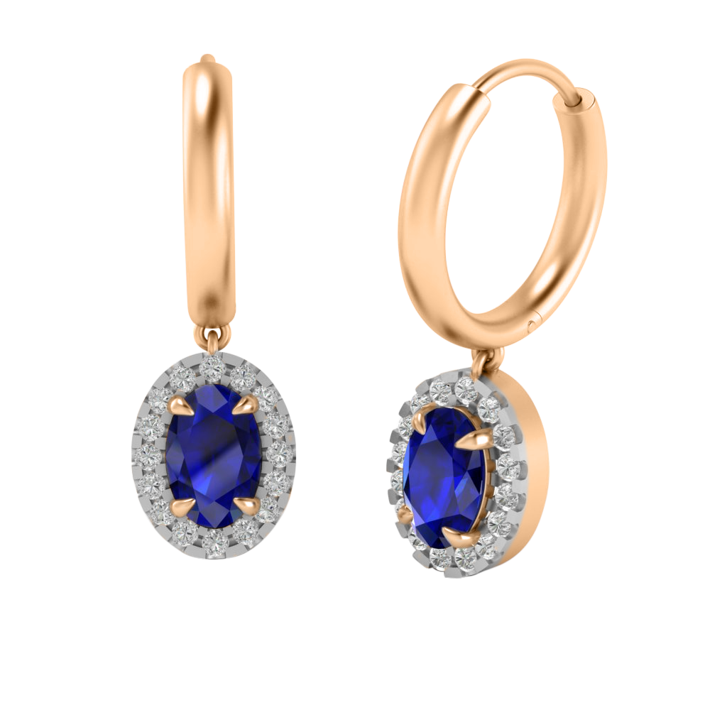 Classic Drop Oval Blue Sapphire 18K Rose Gold Earrings