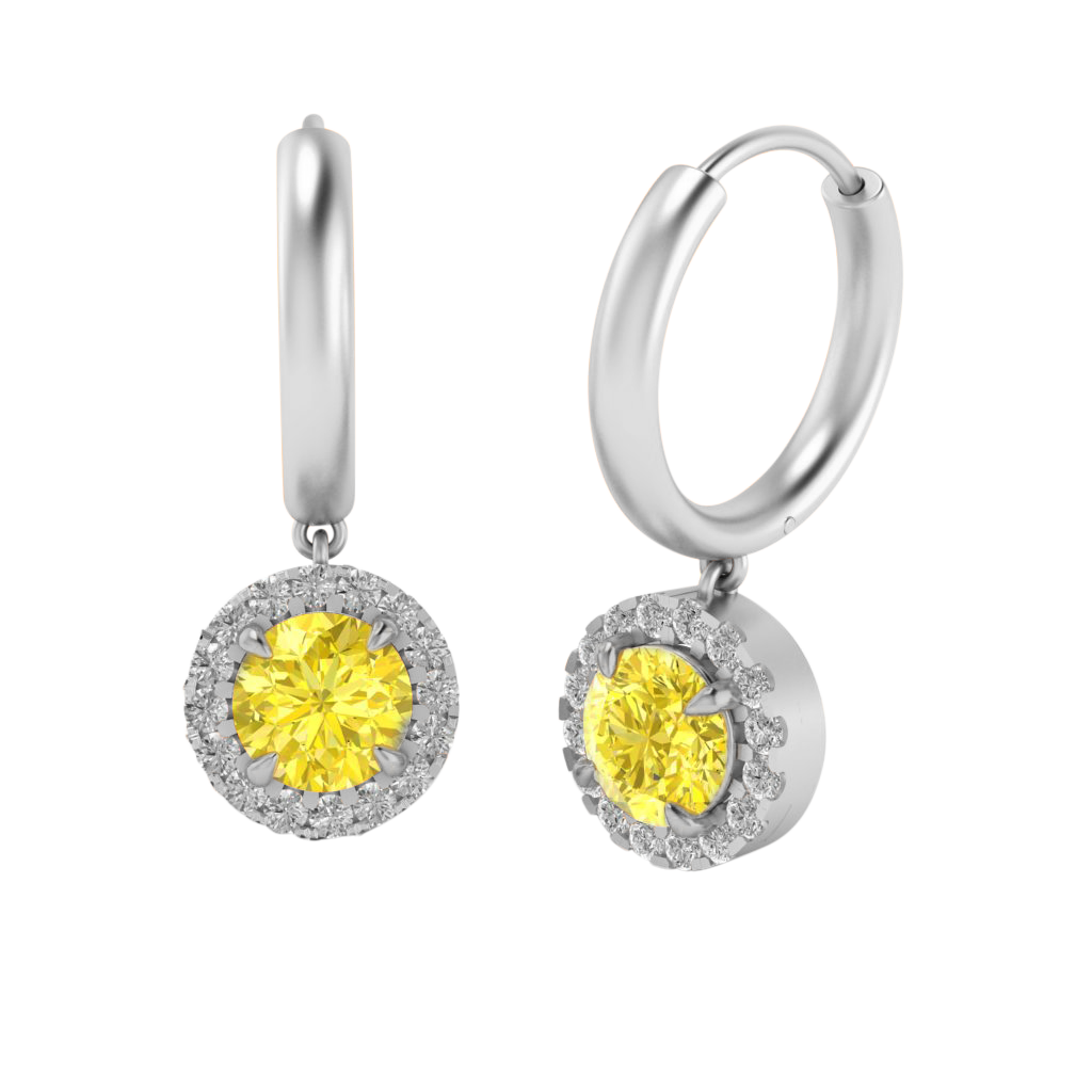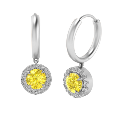 Classic Drop Round Yellow Sapphire 18K White Gold Earrings
