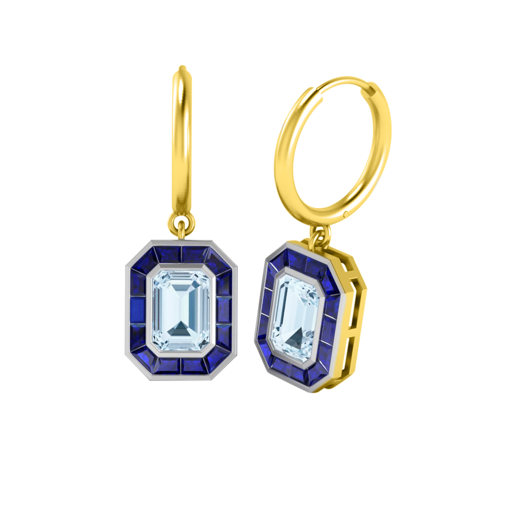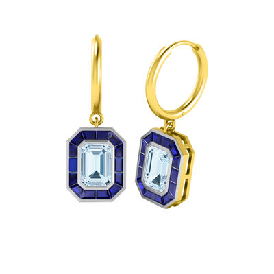 Deco Drop Emerald Aquamarine 18K Yellow Gold Earrings