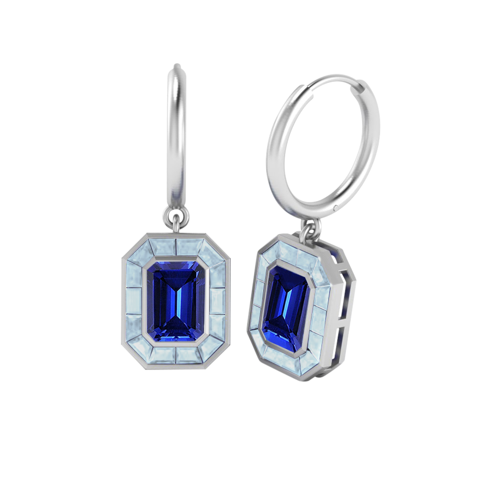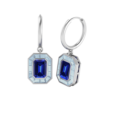 Deco Drop Emerald Blue Sapphire 18K White Gold Earrings
